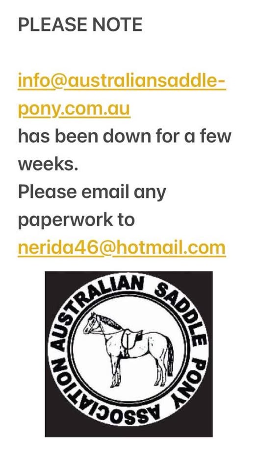 Australian Saddle Pony Association PO Box 150 PEAK HILL, NSW 2869 Ph: 02 6869 1627 Fax: 02 6869 1997 info@australiansaddlepony.com.au